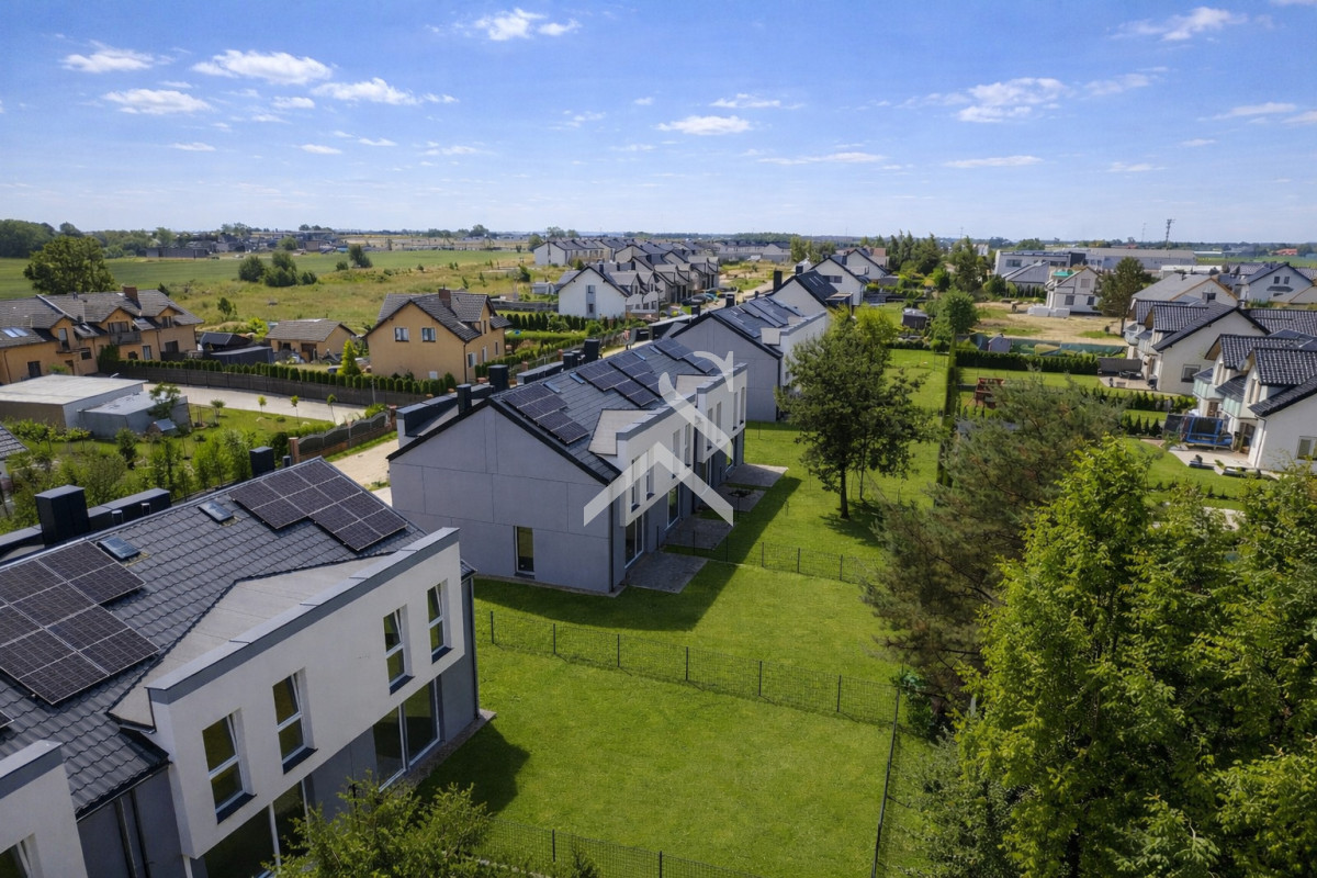 Każdy dom wyposażony jest w nowoczesną pompę ciepła LG Therma V oraz instalację fotowoltaiczną o mocy 4,55 kWp. Zastosowano okna trzyszybowe antywłamaniowe, tarasy zostały wyłożone kostką, ogródki są wydzielone ogrodzeniem. Domy posiadają wschodnio-zachodnią ekspozycję. Do każdego lokalu przynależą dwa miejsca parkingowe naziemne.