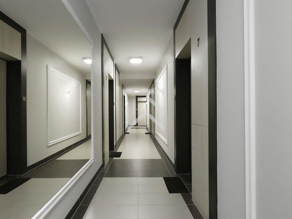 Mieszkanie jest kompletnie urządzone i gotowe do zamieszkania. Składa się z jasnego salonu z aneksem kuchennym, wyposażonego w klimatyzację oraz wyjściem na duży balkon z otwartym widokiem na przestrzeń i zieleń, bez bezpośredniej zabudowy przed oknami. Ekspozycja zapewnia bardzo dobre doświetlenie wnętrza przez większą część dnia, a klimatyzacja znacząco podnosi komfort w sezonie letnim.