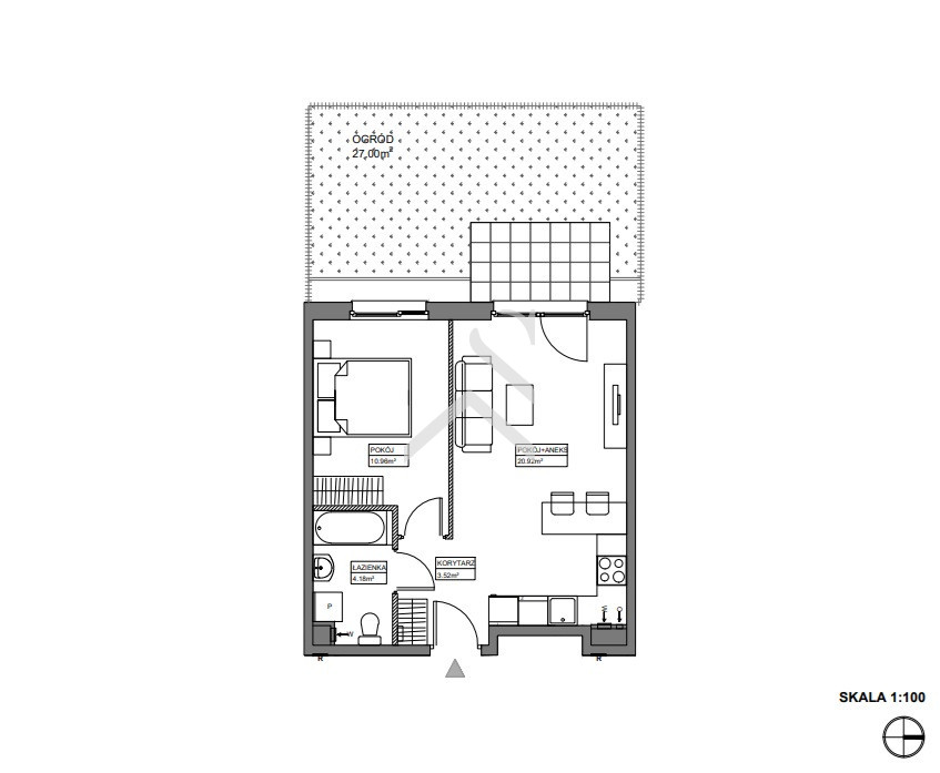 - przedpokój z przestrzenią pod zabudowę.