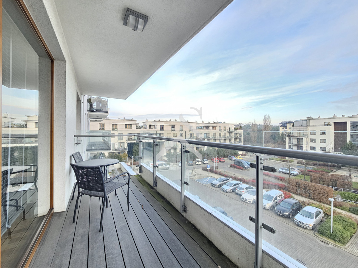 - Balkon z widokiem na zadbane, spokojne osiedle.