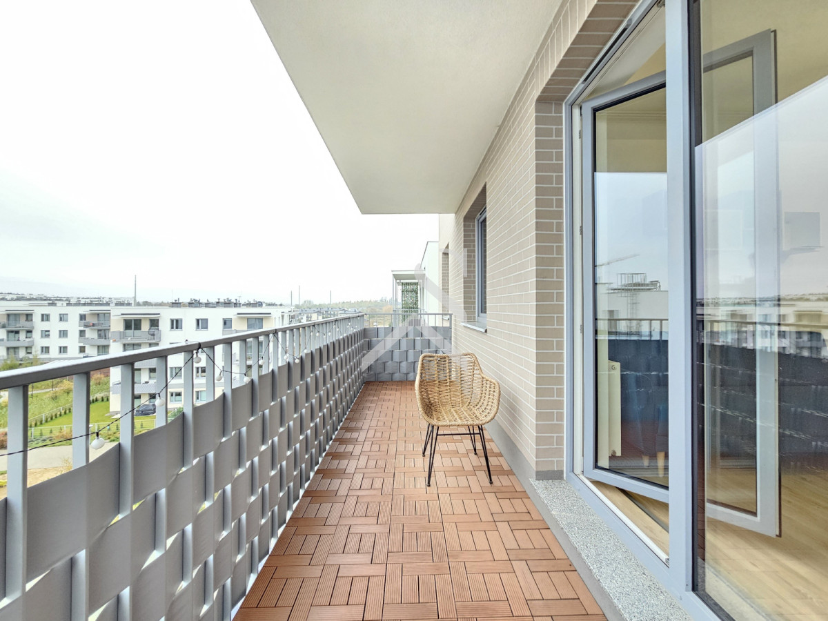 - Pokój z aneksem kuchennym z wyjściem na duży balkon,