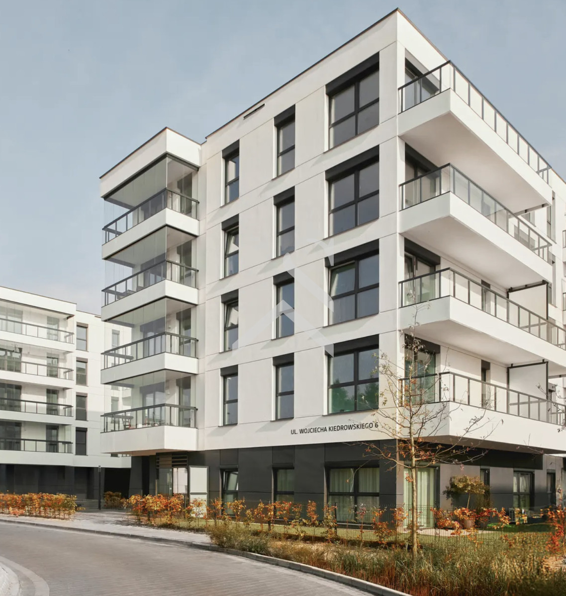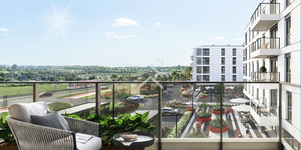 Przemyślana architektura - nowoczesne budynki z przeszklonymi balkonami i ogródkami na parterze.
