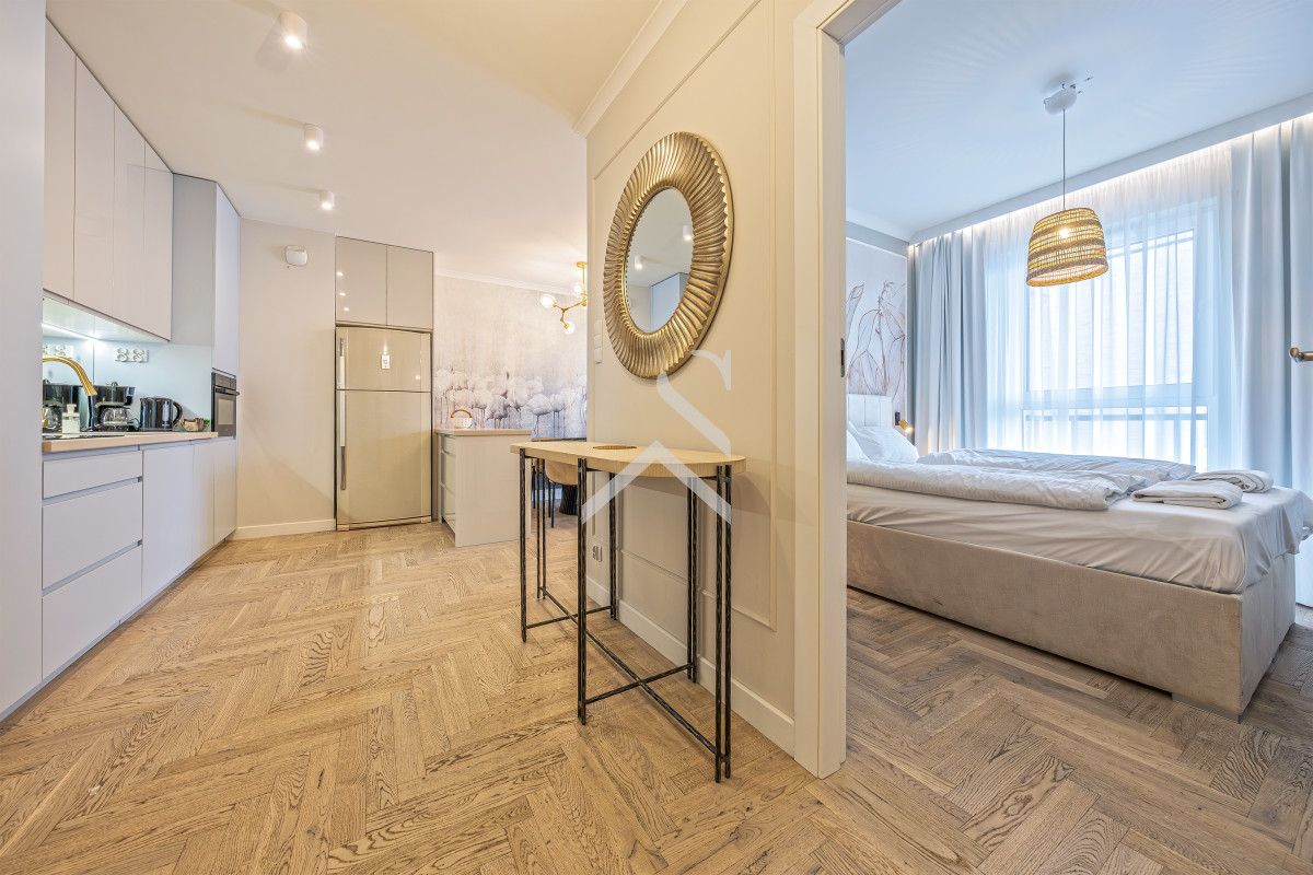 Mieszkanie wykończone z ogromną dbałością o każdy detal, drewniane podłogi. Gotowe do wprowadzenia.