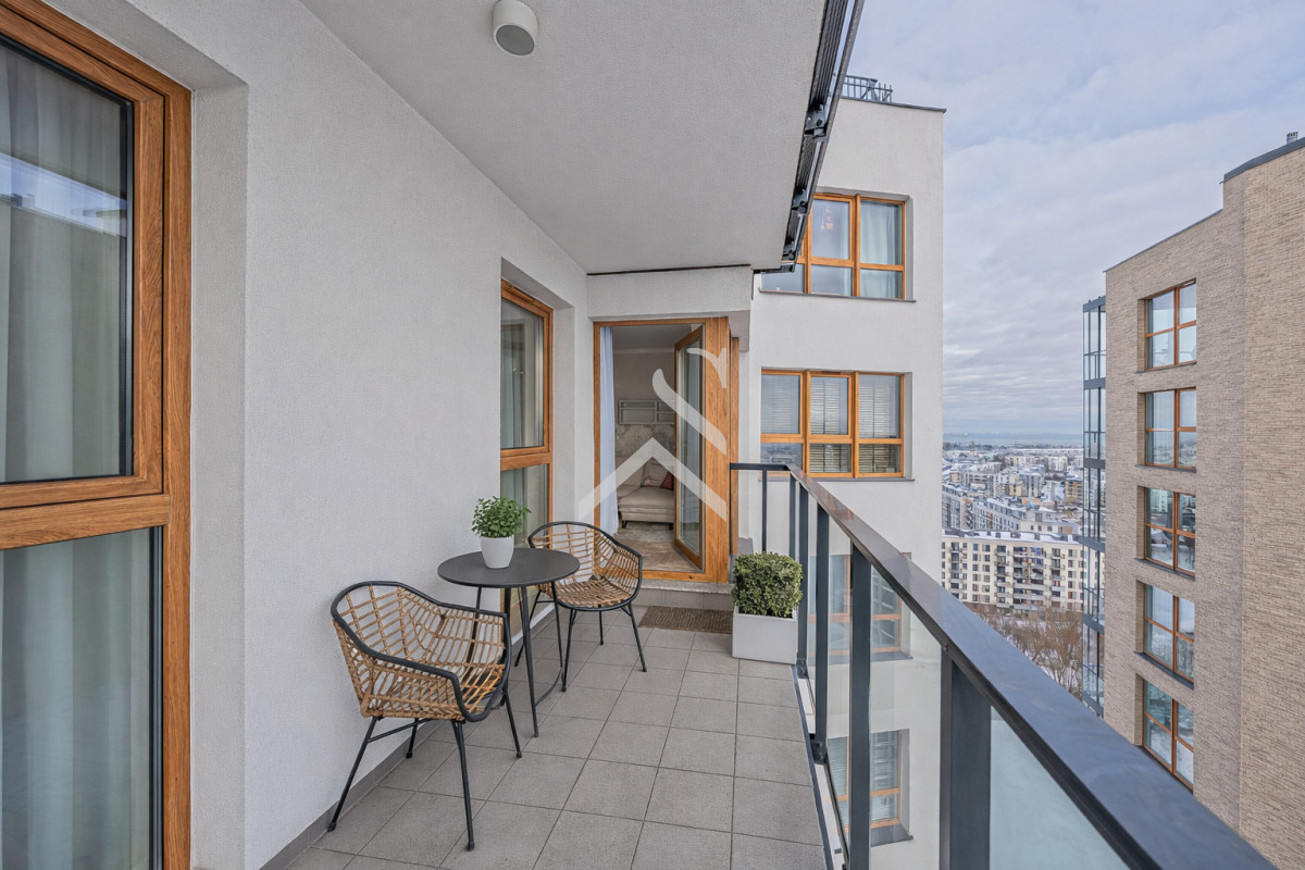Mieszkanie z częściowym widokiem na morze oraz panoramę miasta położone na 15 piętrze w 17 piętrowym budynku.